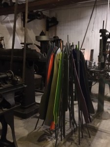 Varying in scale as well as in material, the artists’ work is often placed within existing museum cases, balanced on larger objects, or as an addition to a ‘staged’ room. Finding the work by exploring the museum is engaging in itself, with some pieces that leave you stopping in your tracks, and others that lend a wry smile. Large installations include Clee Claire Lee’s stunning steel wire sculpture ‘Visibilising the Invisible’, crocheted and suspended in Tom Parkin’s workshop to represent the often silent work of Sheffield’s women bearing children, and Gillian Brent’s ‘Work Life Balance’ in which bright human-sized acrylic knife blades are positioned amidst workshop machinery.