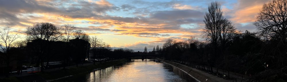 Leaving York. Sunset over the River Ouse.
